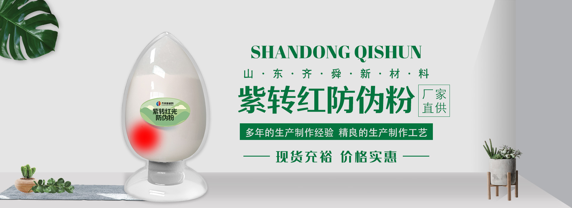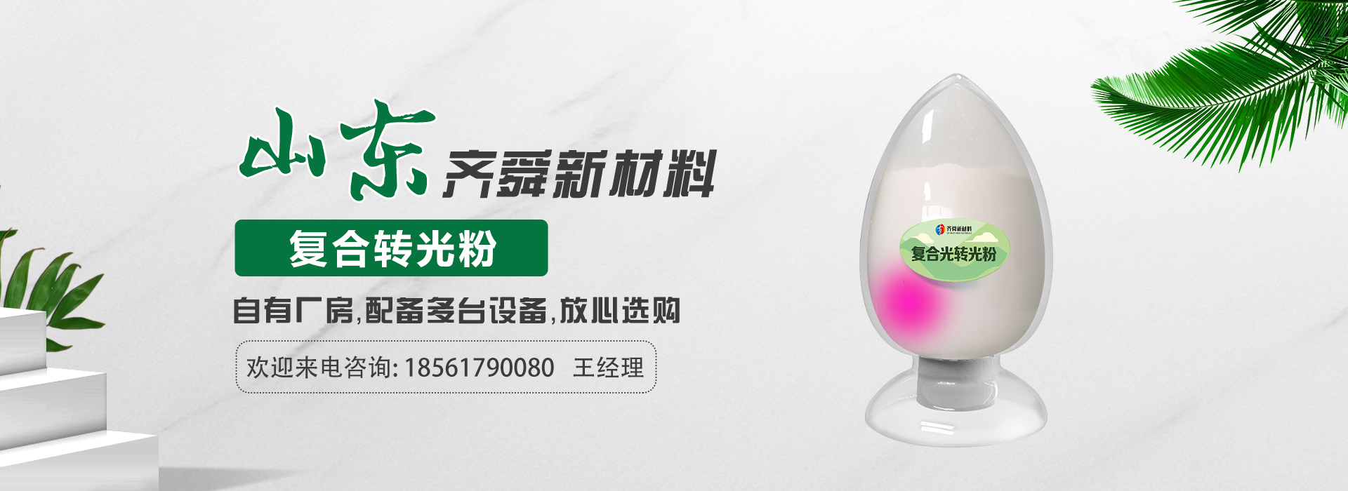 我公司前身為2011年成立的淄博舜明熒光科技有限公司。隨著公司的發(fā)展,廠址從淄博搬遷到青島,2020年5月公司重新注冊為山東齊舜新材料有限公司。公司注冊資本2000萬元,主要從事新材料研究和開發(fā)。目前主要產(chǎn)品包括:農(nóng)膜用轉光粉、轉光母粒以及轉光農(nóng)膜;農(nóng)膜用長效防霧流滴涂覆液;復合肥添加劑及葉面肥(稀土微肥);防偽粉;LED封裝熒光粉;夜光粉;太陽能光伏電池增效熒光粉;鋰電池正極材料等。